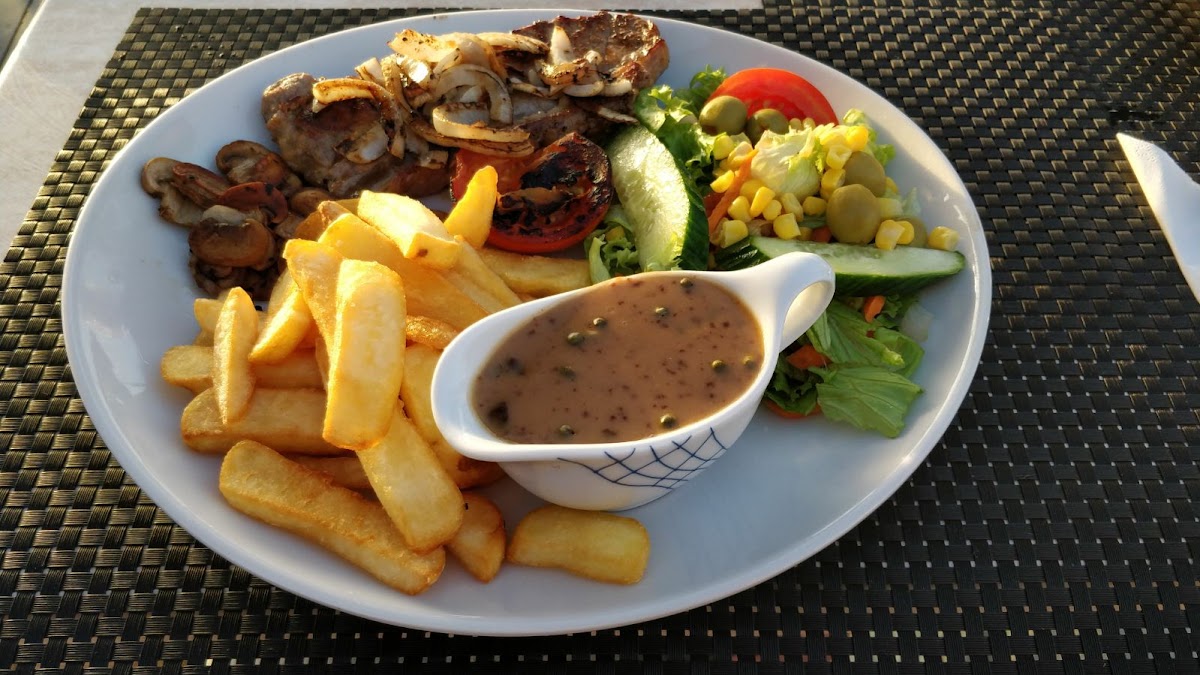 Another top notch watering hole on your front walkway, great prices and range of drinks, we didn't eat just drink, the wife did mention they have one of the cleanest toilets she had been to.